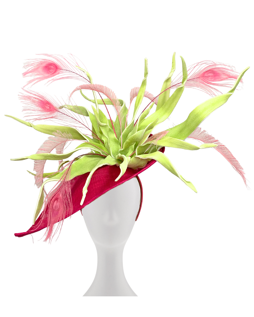Beautiful fascinator with pink & lime green accents
